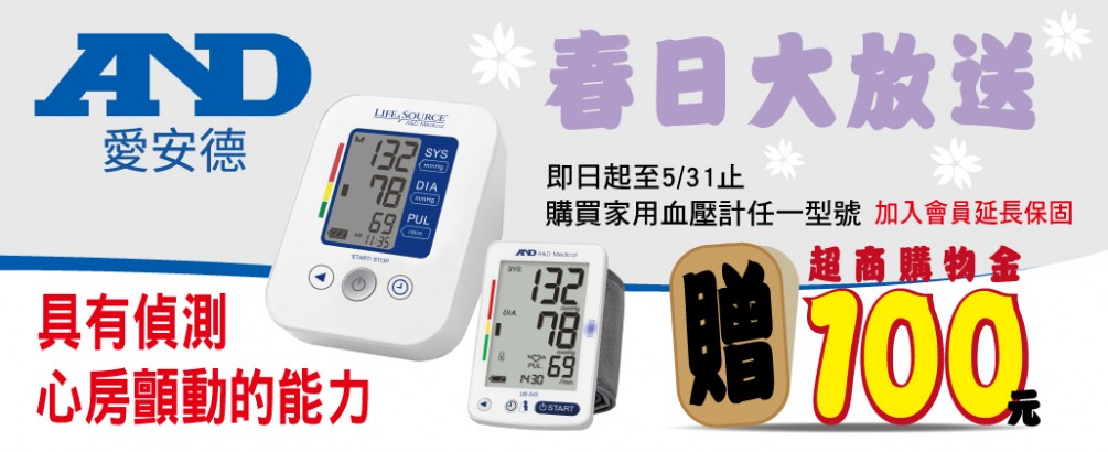 【活動內容】 於活動期間購買家用血壓計系列任一機種,成為AND愛安德會員,並完成保固登錄資訊及發票上傳,即可兌換「$100四大超商電子購物金」。 【活動期間】 即日起~2026/5/31 【發票登錄期間】 即日起~2026/06/15 *請上傳清晰發票照片(含...